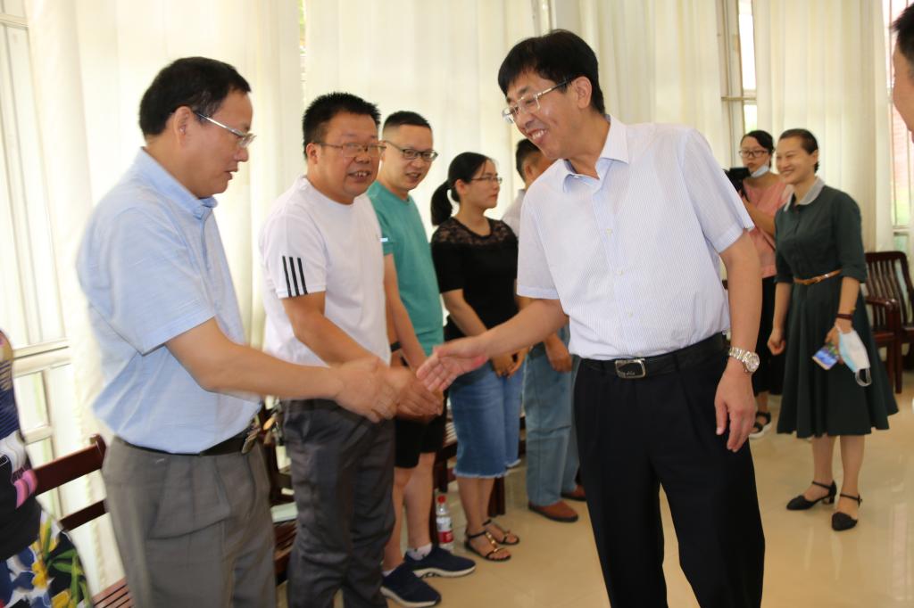 “老师们辛苦了!”袁书记满面春风地走进学校2号会议室,在与老师们一一握手后,他对我校今年高考再次取得优异成绩表示热烈祝贺,他说,孝感一中夺得孝感市文科状元很不容易,令人振奋!他向谈小平老师询问了状元张明珠的情况,他表示孝感一中的发展是有目共睹的,希望孝感一中能再接再厉,夺得全市理科高考状元,创造更大的辉煌!