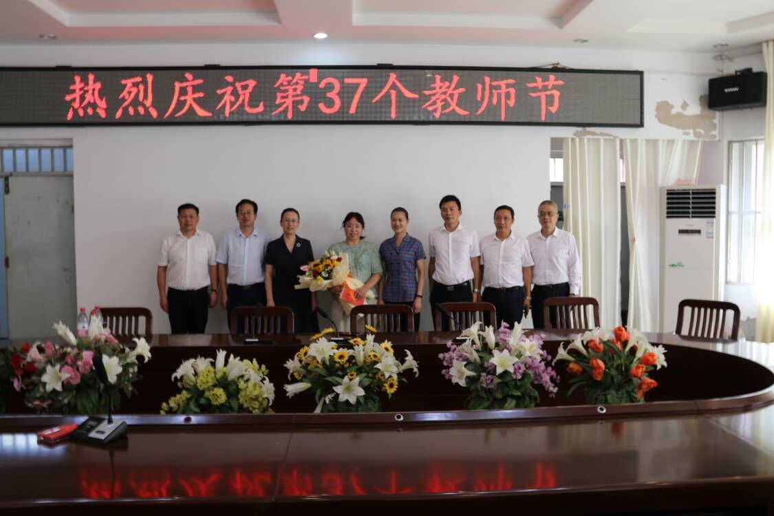 9月9日下午,正值第三十七个教师节即将到来之际,孝南区区委区政府领导宣传部长姚惠萍、副区长赵红芬、区教育局局长刘向东等领导来我校慰问高考优秀教师。学校领导梅建辉、张胜华、辛百魁、祝亮及优秀教师代表原高三(3)班主任陈静老师等在2号会议室参与了慰问活动。区委区政府领导为优秀教师代表送来教师节慰问金并合影留念。