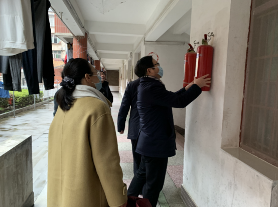 首先,督查组一行查看保安室监控等安保设备及物品,试用一键报警系统,了解学校安保人员配备情况。其次,深入学生宿舍查看消防设施的配备情况,特别关心学生的住宿安全和日常生活,对学生宿舍的卫生情况以及学生的自理能力给予高度评介。随后,领导们查看教学楼消防设施,熟悉安全通道。最后,检查组前往食堂,对学生就餐环境、食品安全及消防安全全面细致的检查询问。