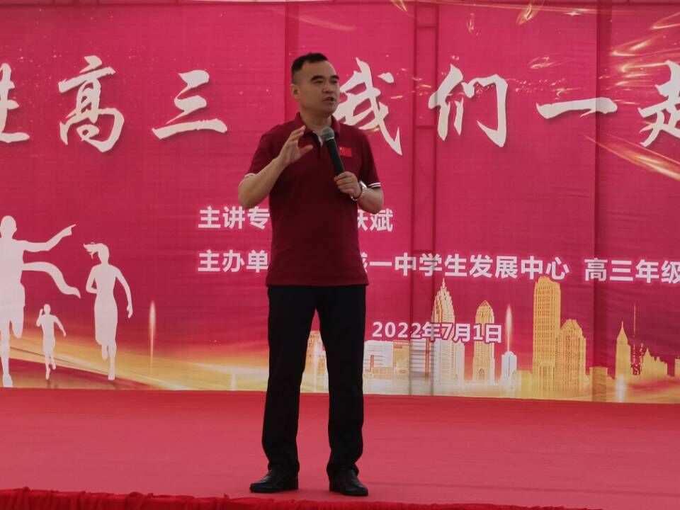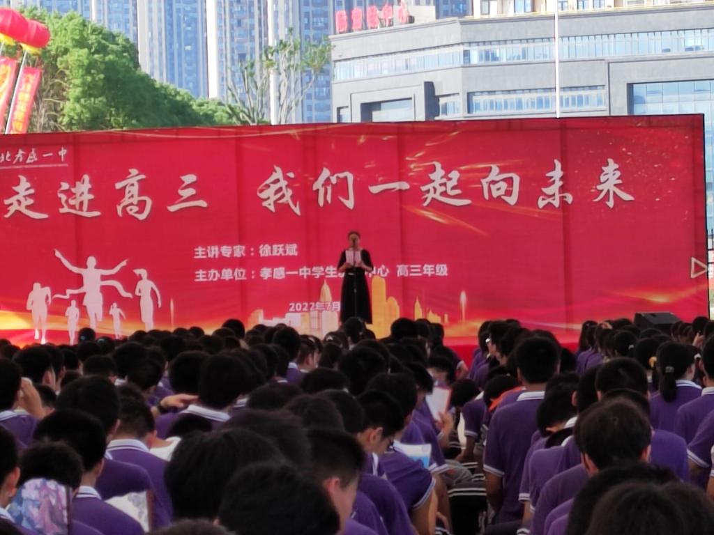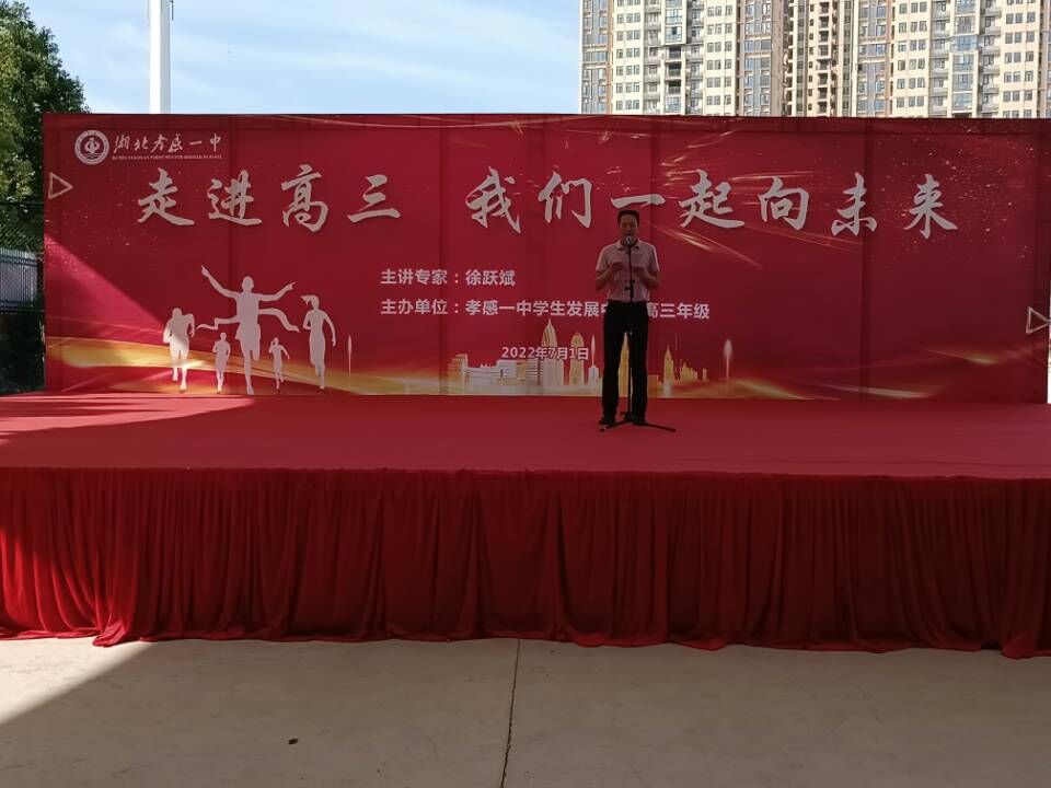 为尽早掀起新高三同学的学习高潮,不断增强同学们的紧迫感、责任感、使命感,全力以赴,抢抓机遇,赢得先机,7月1日清早,孝感一中学生发展中心组织全体新高三的学生(包括启澴学校)在学校运动场举行了一场声势浩大的以“走进高三,我们一起向未来”为主题的励志报告会。大会由级部主任付绍斌主持,部分学生家长应邀参加了这次盛会,分管学生工作副校长祝亮到场祝贺。尽管天气异炎热,但是整个会场秩序井然,激情涌动,掌声如雷,气氛热烈!