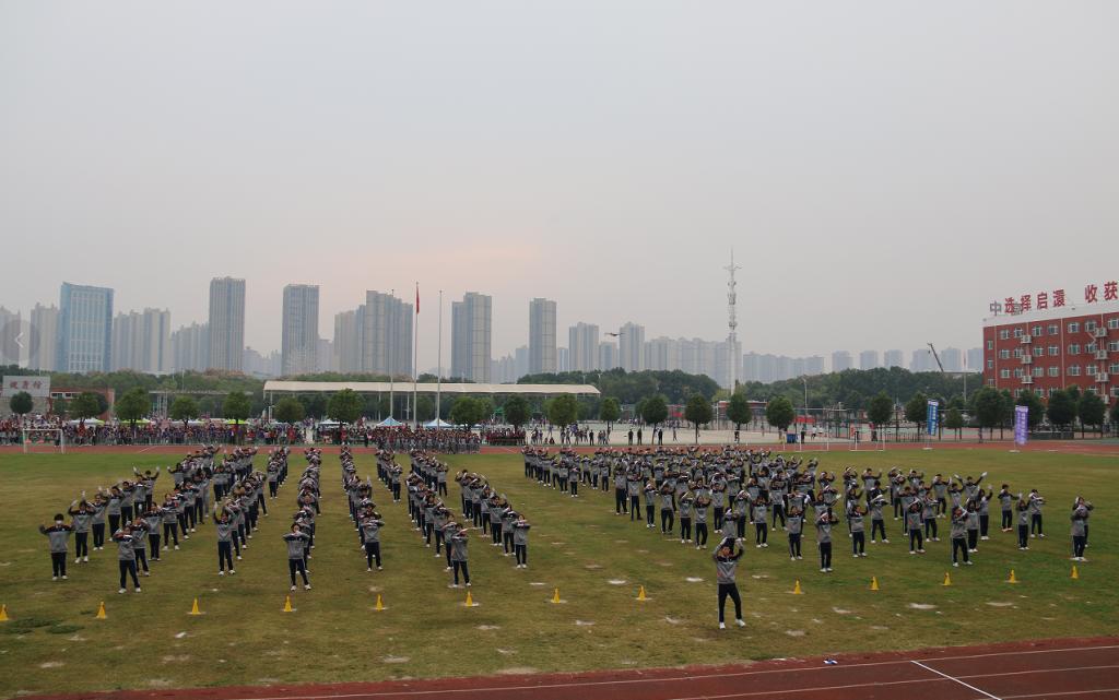 最后,青春如火气势如虹的团体操表演陆续登场。高二年级课间操《饿狼传说》,紧跟时代节奏,舞动欢快旋律,魅力四射,点燃全场学生高涨的热情。