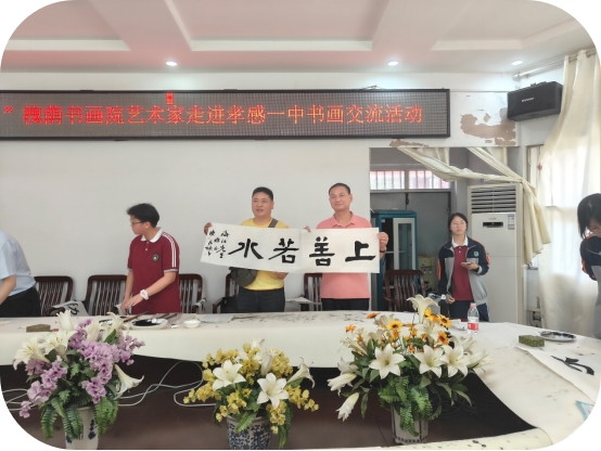 孝感一中梅建辉校长致感谢辞,对书法艺术家们的到来,表示感谢与敬意。同时寄语学校师生要以此次活动为契机,向书法名家们学习,汲取中国书法艺术营养,提高书法书写和审美水平。同时还希望通过本次的传经送宝、倾情相授,激发我校师生热爱书法、写好书法的热情,打造诗书自华、墨香浓郁的书香校园。