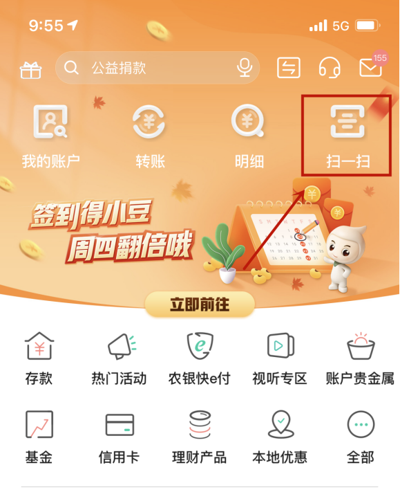 第二步:打开农行掌银APP,点击掌银首页扫一扫,扫描图下二维码
