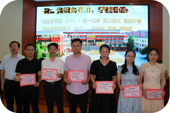 党委书记刘向东为获先进备课组、学科中心负责人颁奖