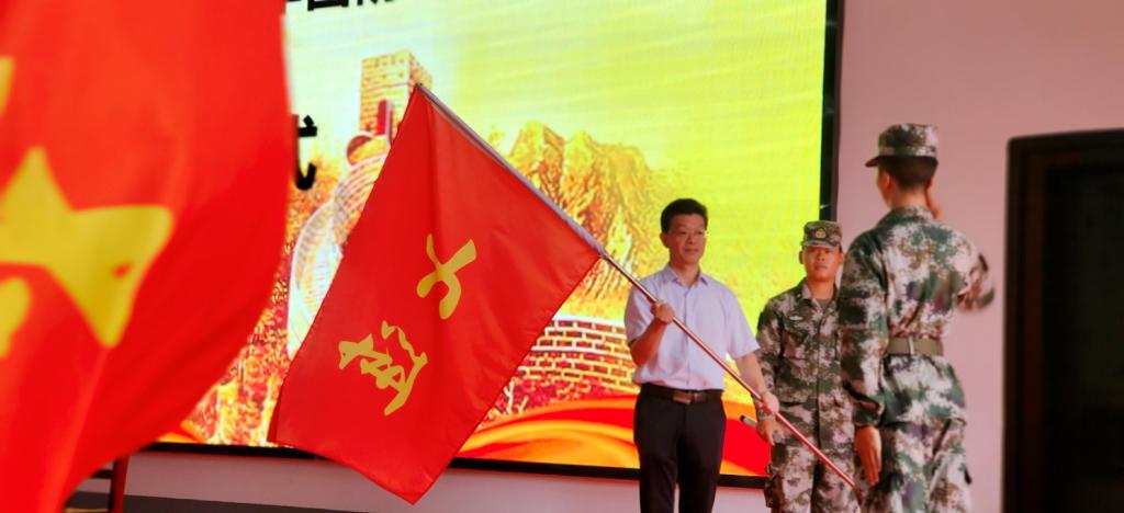 学校党委书记付世俊向承训部队各营、各连授旗