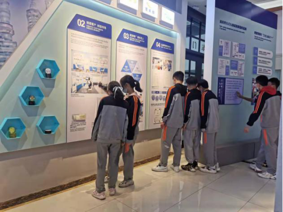 十几分钟后抵达舒氏集团,梅校长为代表的学校领导陪同学生,由集团专人带领进行有序参观。首先参观的是产品的生产车间,包括半成品车间、成品车间、涂布车间等等,集团负责人边走边介绍各个车间的主要内容和特色,使学生了解到产品的基本生产流程和企业的运作方式,丰富拓展学生的知识视野。学生不仅要认真学习课本知识,也要了解课本之外生活实践中的知识,这对于学生未来的全面发展实有助益。