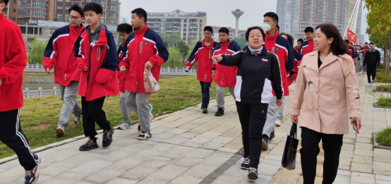 这是一段砥砺意志的坚韧之旅,这是一段凝聚力量的振奋之行。侯著宏主任一声令下,高一年级以班为单位,学生排成两路纵队,从学校东门出发,途经银河桥→沿河南路往西→沿河大道→北京南路桥→沿河大道→玉泉南路桥→沿河大道→长征南路桥→沿河大道→南卧桥→沿河北路往东→从西门返回一中,往返全程24华里。同学们在班主任、老师的陪伴下,有序地行进。同学们精力充沛、斗志昂扬、士气高涨,口号嘹亮,高举班旗,一路前行,感受春日美景,凝聚团队力量,磨炼意志品质。