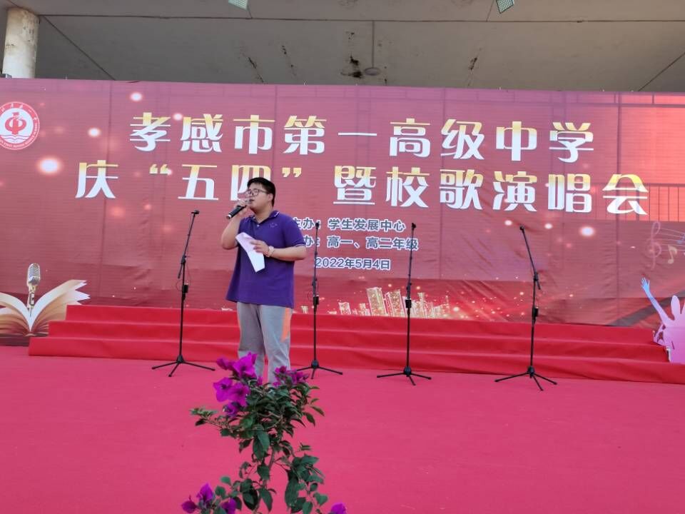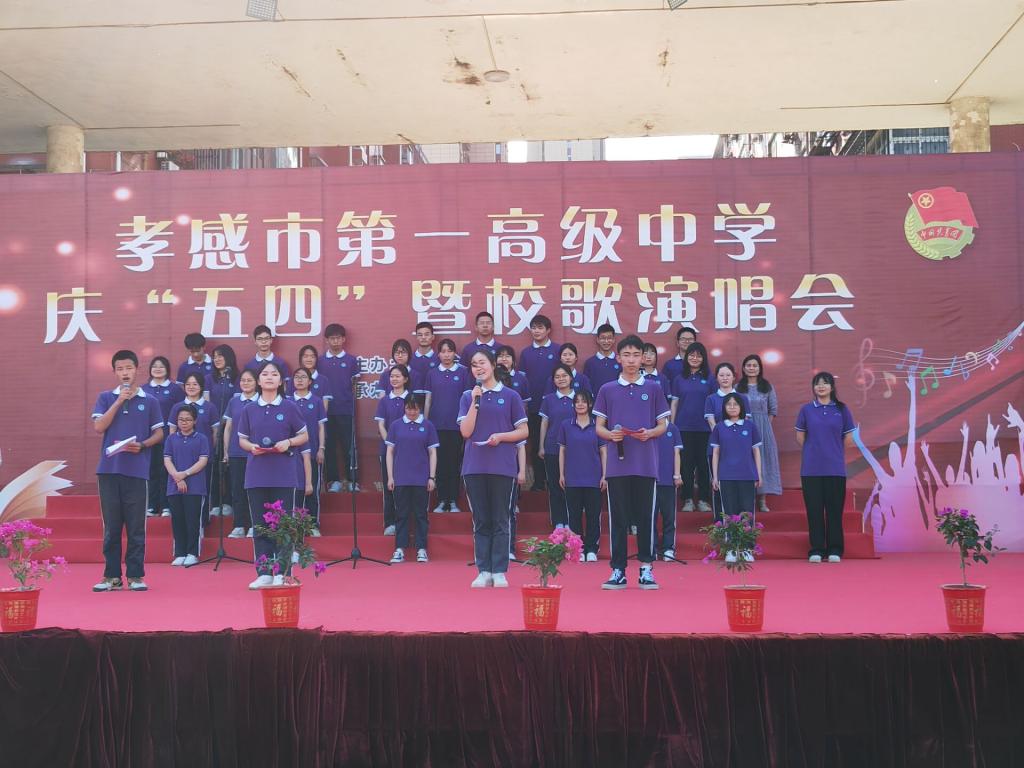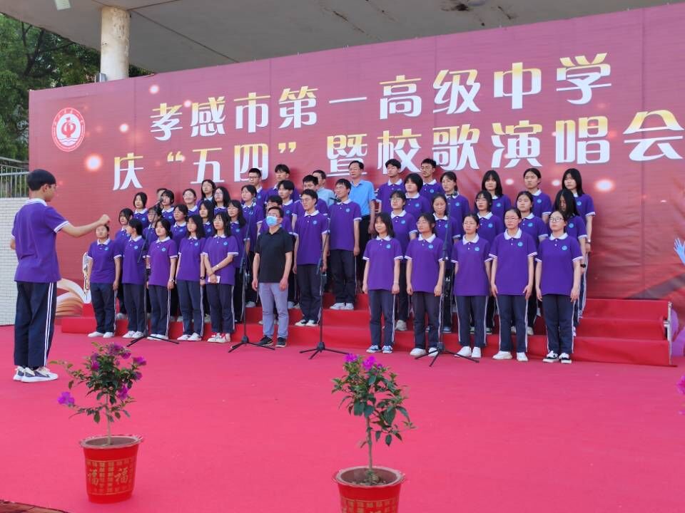 为庆祝五四青年节,弘扬校园文化,展现一中学子蓬勃向上的精神状态,在学校学生发展中心的倡导与主办下,在年级的精心组织与承办下,孝感一中高一、高二年级5月4日在学校运动场举行了庆“五四”暨校歌演唱会。