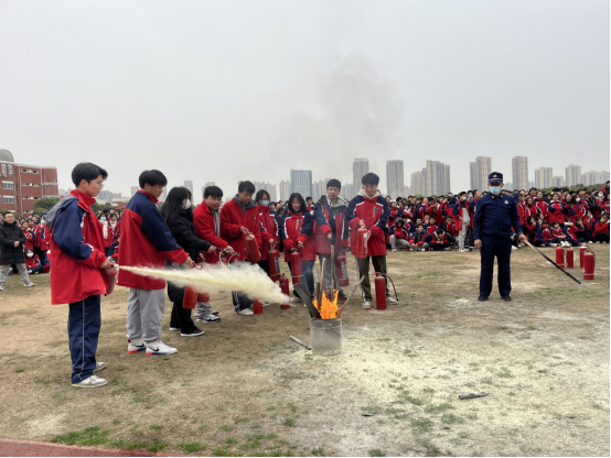 整个演练过程既紧张又有序,全体师生用时约3分钟完成了安全撤离并到达指定点集合,达到了预期效果。到达指定集合地点后,孝南区消防救援大队丁参谋为高一师生讲解灭火器的相关知识,正确使用方法和注意事项。现场演示了灭火器的操作过程,之后又组织学生进行实际操作。