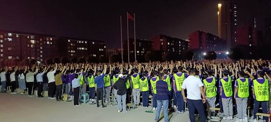 全体学生面向国旗宣誓,燃烧激情,奋力拼搏。