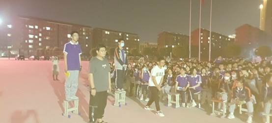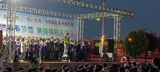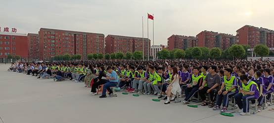 夏日的傍晚,夕阳西下,片片红霞与朵朵白云各自映照半边天幕,操场上高一年级全体学生和班主任老师正襟危坐,队列整齐。18点整,动感的音乐响起,激情的演讲正式拉开帷幕。