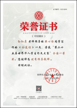 世界华人学生作文大赛始创于2000年,是由中国侨联、全国台联、人民日报海外版、《快乐作文》杂志共同主办的世界性华人写作比赛。世界华人学生作文大赛是得到教育部认证的全国性白名单赛事。本届大赛共吸引了来自50个国家和地区的430多万华人华侨学生参赛,累计收到复审稿件42万余份,被誉为华语写作界的“奥林匹克”。大赛根据国内、海外不同地域特色,分别设置写作主题:国内聚焦“汉字之美”“友谊怎样‘翻译’”“和谐”“中华文明”;海外围绕“汉字之美”“友谊怎样‘翻译’”“故乡”展开,旨在搭建全球华人学生文化交流桥梁,激发创作活力,弘扬中华优秀传统文化。