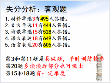 教学与教研中心要求各学科规范质量分析内容及流程,考试质量分析包括各班答题得分比较分析、试卷每题答题统计及分析、前段时间备课组工作得小结、后阶段备课组的工作举措。要求各备课组质量分析必须做成PPT课件,并利用集体备课时间统一进行质量分析。