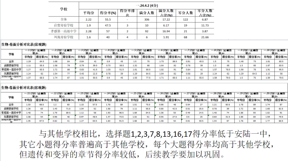 教学与教研中心要求各备课组依据以下四个方面对期中考试试题及考试结果做精细化分析。1、明确每小题的平均得分差距。组织校际对比分析,形成薄弱点清单,形成专题巩固训练。2、校内分析。每小题、每班得分比较。3、前期经验及不足。4、后期计划及措施。