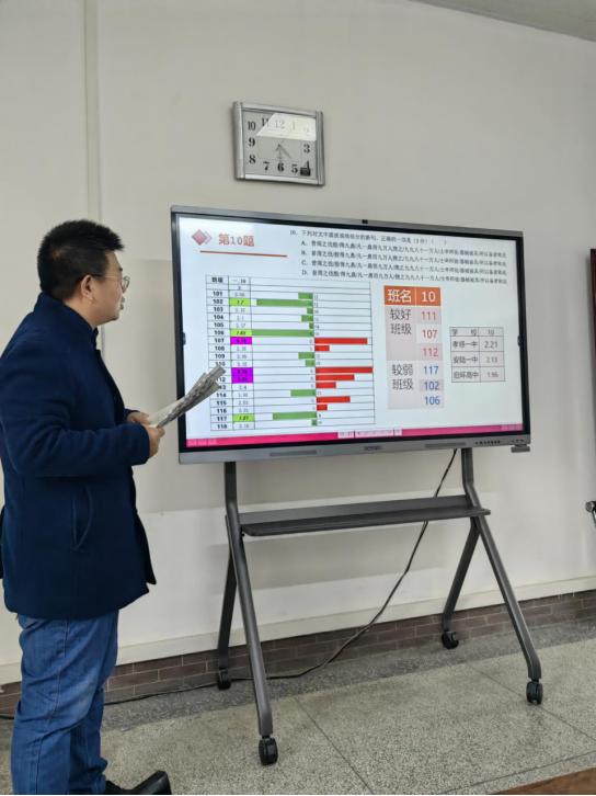 各备课组都能按照的“教”和学生的“学”两个层面,用详实的数据和直观的图形,对各学科各班级成绩从横向和纵向进行细致分析,帮助老师们进一步客观认识问题,理性执果索因,为精准对标问题,谋求下阶段突破。