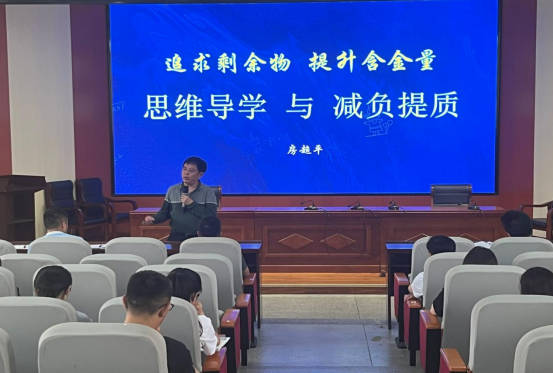 15日上午9:40,房教授给高二年级全体教师做了以“思维导学与减负提质”为主题的报告,指导教师如何实现“减负提质”的高效课堂。房教授的演讲激情而又生动,案例丰富而又真实。追求剩余物,提升含金量,体现教师自身的价值,赢得社会的尊重等观点,对现场教师触动很大。