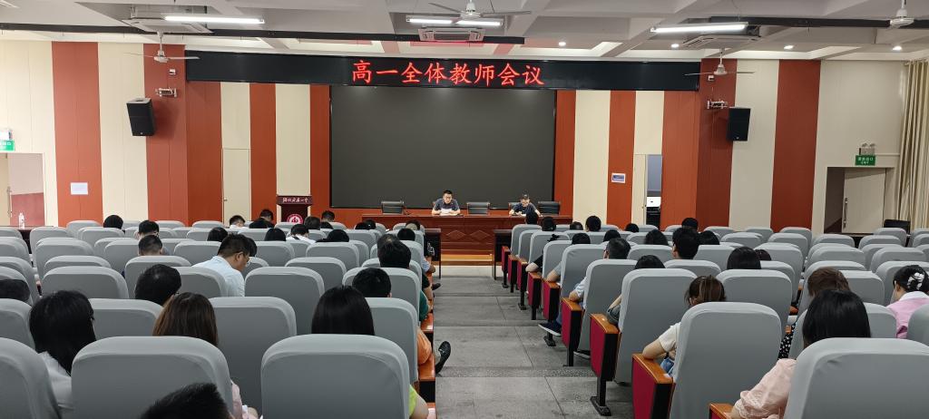 6月23日,尽管正值端午假日,高一年级各项教育教学常规工作仍然正常进行。上午课间自习,高一年级在学术报告厅召开了本学期最后一次全体教师会议。
