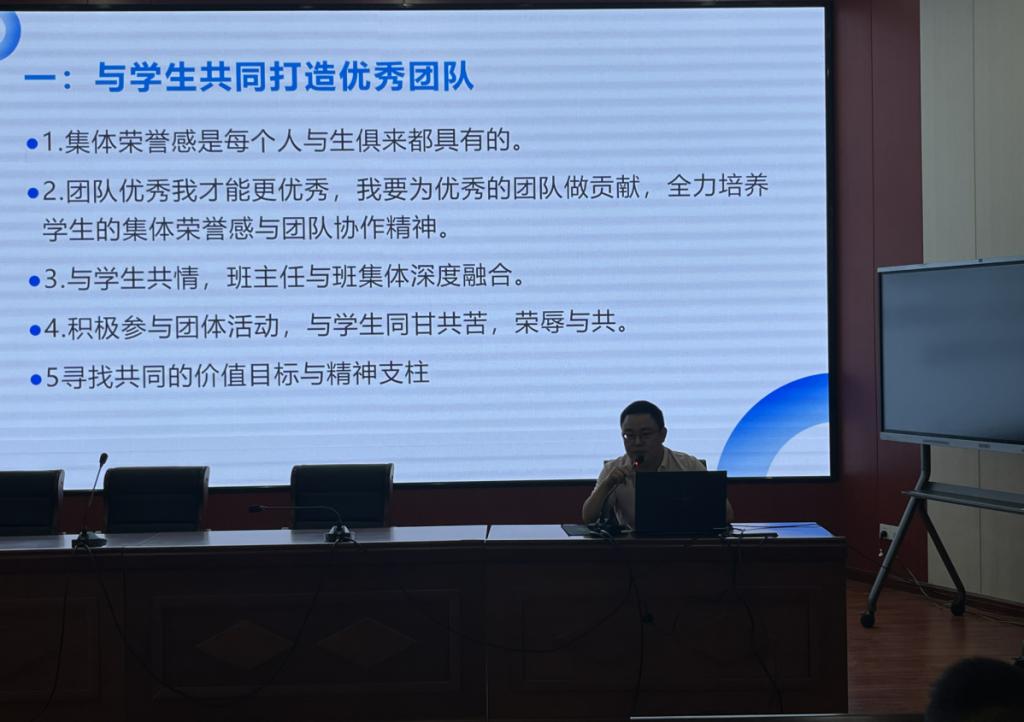 首先,分管德育工作的副校长祝亮同志对前期工作进行总结,并且对后阶段工作注意事项分别一一强调。特别提出班主任日常工作中要更进一步加强家校共育,通过多种方式让家长了解学校和学生的发展。在保持信息畅通的同时,建立良好的家校关系,促进学生健康成长。