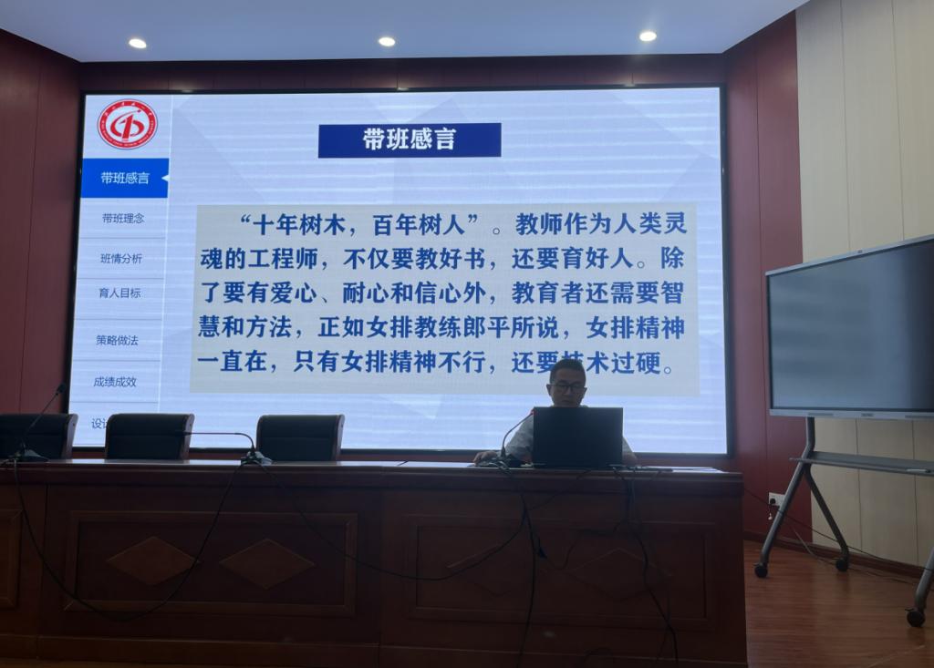 随后,高三年级班主任代表乔爱军老师表达了自己的教育理念:用自己的一言一行影响学生一辈子。乔老师为了快速熟悉每位学生的各种情况,将家访工作做实做细,挨家挨户了解学生、家长乃至家庭全方位情况,并建立每位学生的信息库,真所谓将学生家庭信息了如指掌。乔老师通过要求自己“做行动上的巨人”的方式从而希望班主任切实成为学生心灵的鼓动师。